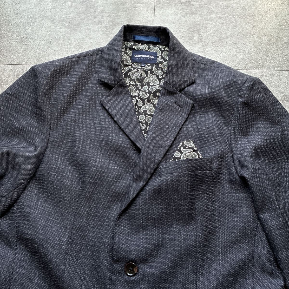 - 【極美品・LL相当】UNION STATION MEN'S BIGI テーラードジャケット ネイビー ペイズリー裏地 本切羽 メンズ 総柄 滑らかな肌触り XL 紺