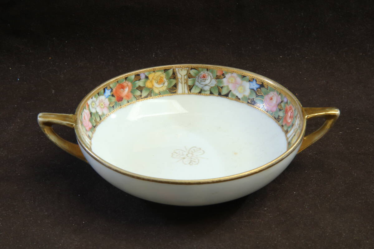 > 2595 オールドノリタケ プレート(ハンドル付) RC-NIPPON 明治 金彩盛り上げ薔薇の縁飾り