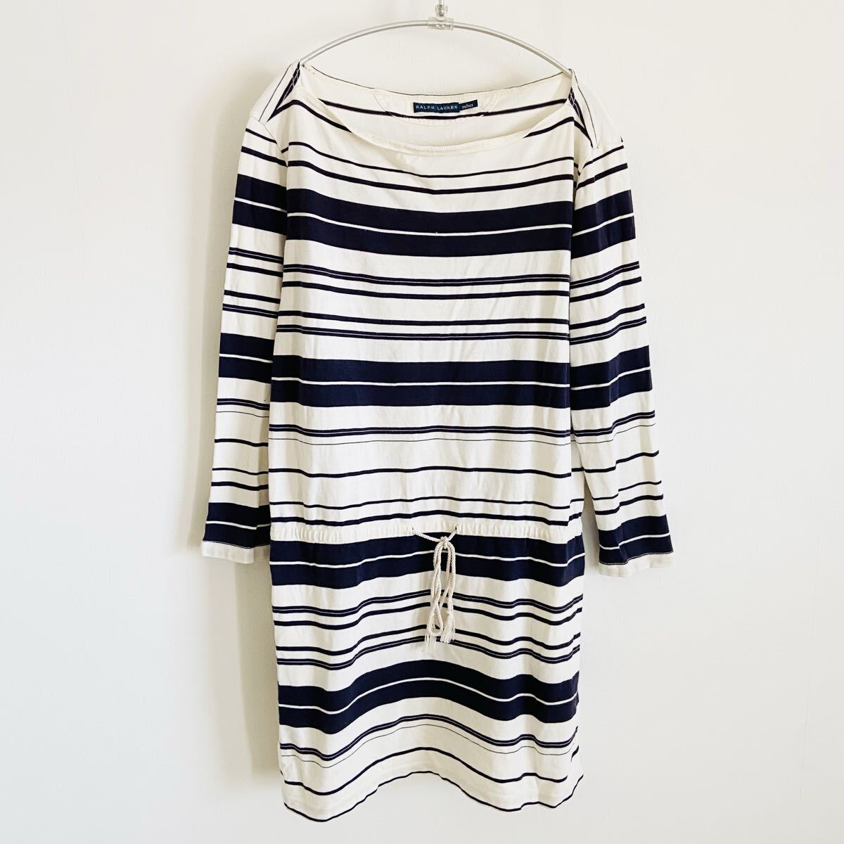 - 【ラルフローレン】ボーダー 長袖 コットンワンピース/L表記/ホワイト×ネイビー/衝撃プライス!王道ベーシックスタイル!1点限定販売★C41