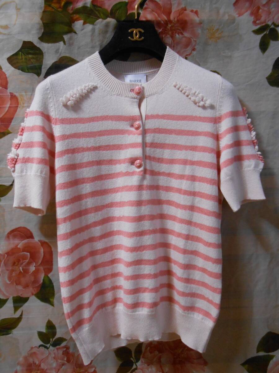 - シャネル傘下Barrie(バリー)小花アップリケ装飾カシミアニット
