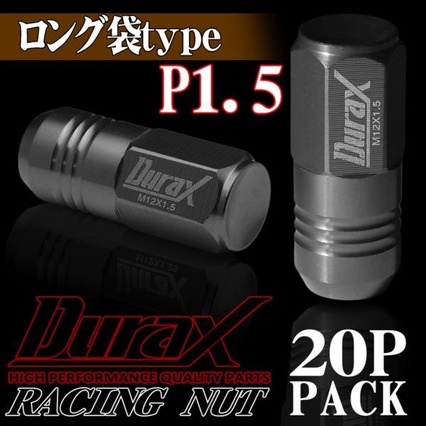 > DURAX製 ホイールナット アルミナット ロング袋ナット 50mm レーシングナット 20個 チタン P1.5 長袋型 トヨタ ホンダ 150CLF