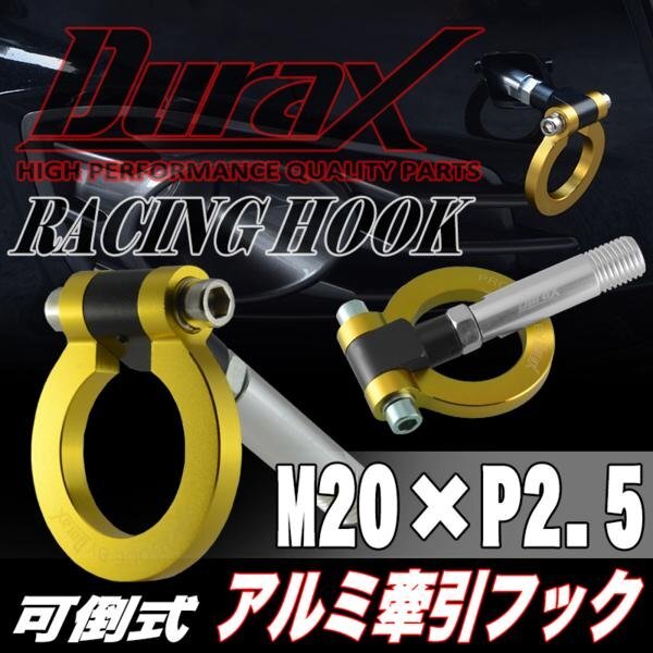 > DURAX正規品 ゴールド 金 けん引 フック 汎用 牽引フック トーイングフック M20×P2.5 可倒式 脱着式 折りたたみ式 軽量 ドレスアップ