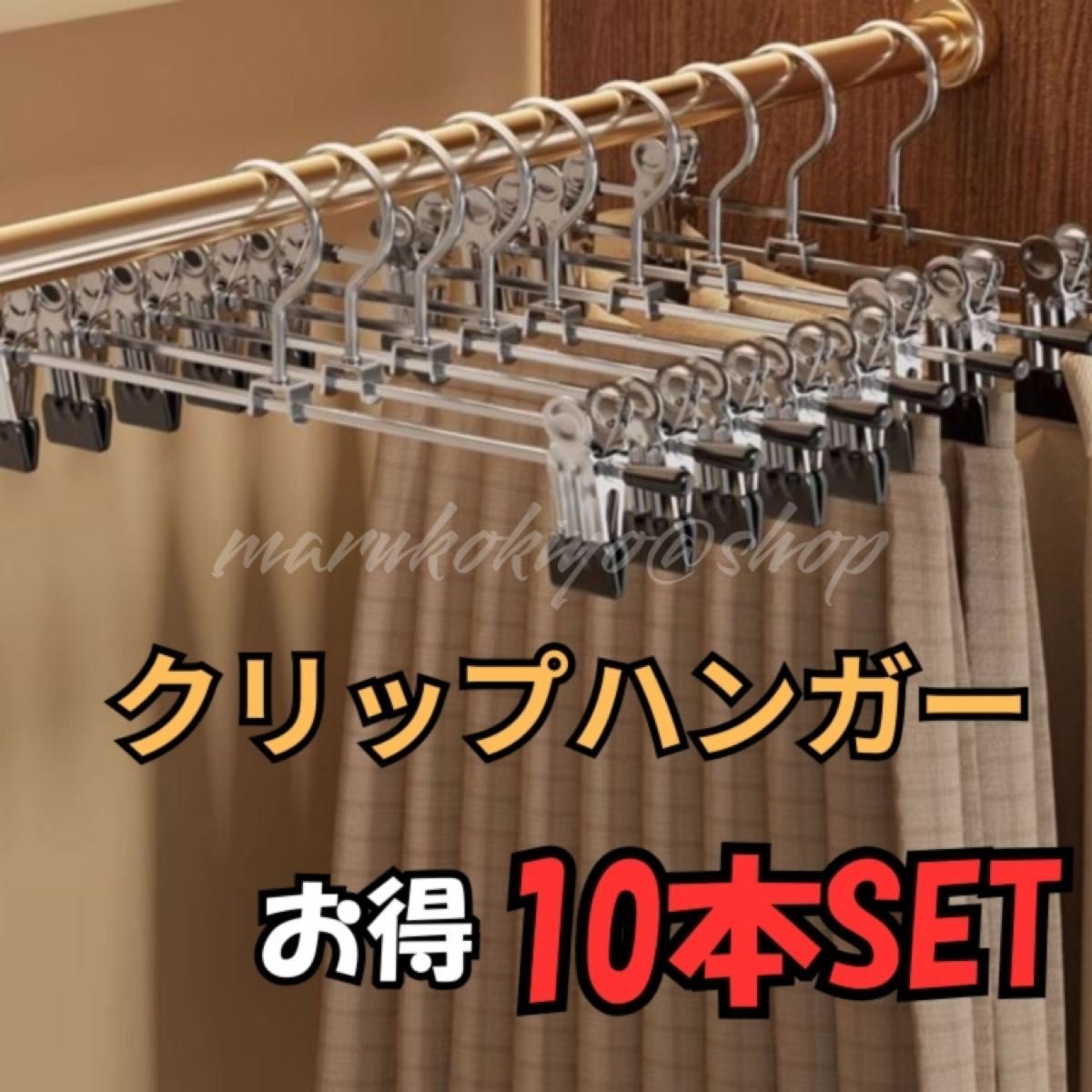 - 強力クリップハンガー 10本セット 軽量 お得 滑り止め 可動 新品 パンツ スカート ズボン デニム PVC素材 タオル