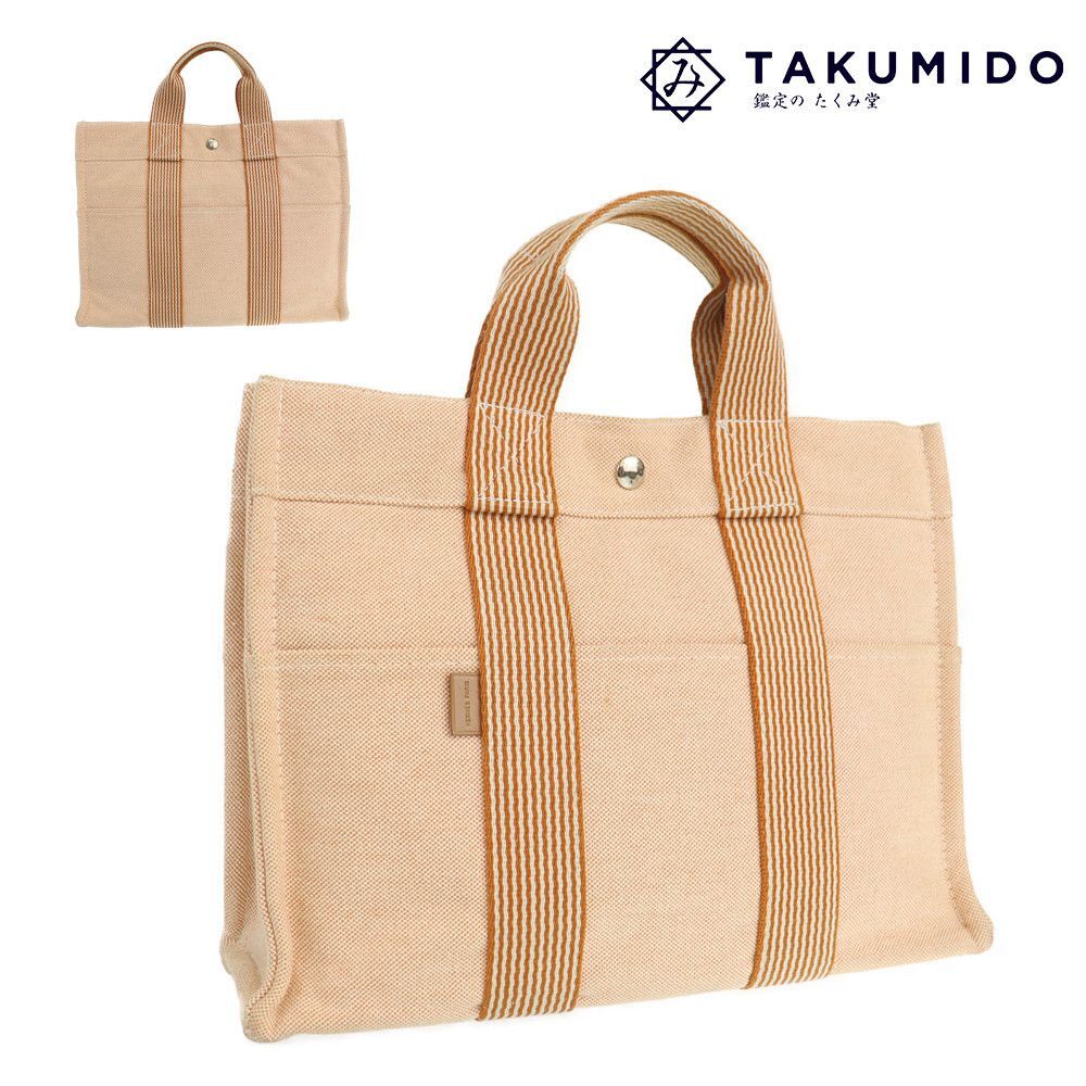 > エルメス HERMES トートバッグ ニュー フールトゥ オレンジ キャンバス 中古AB 282548