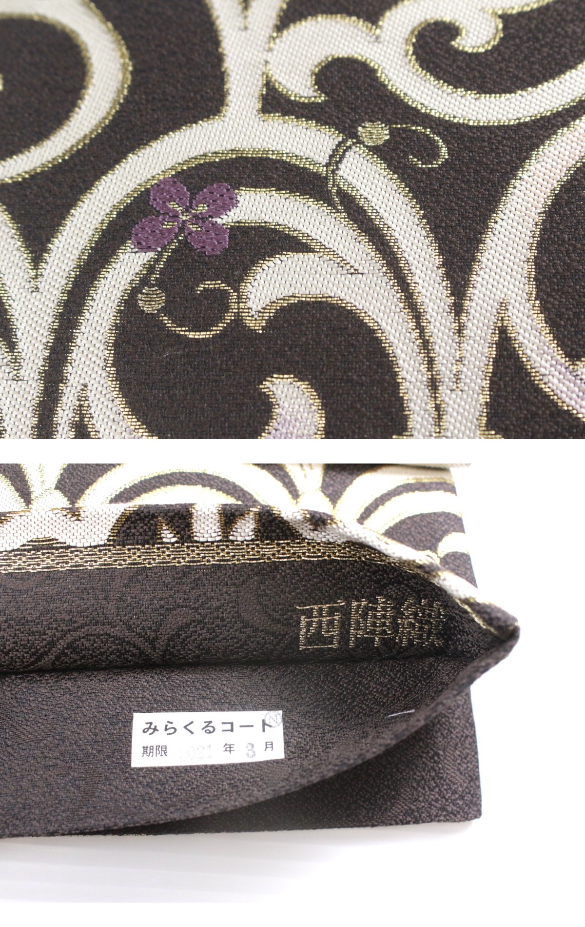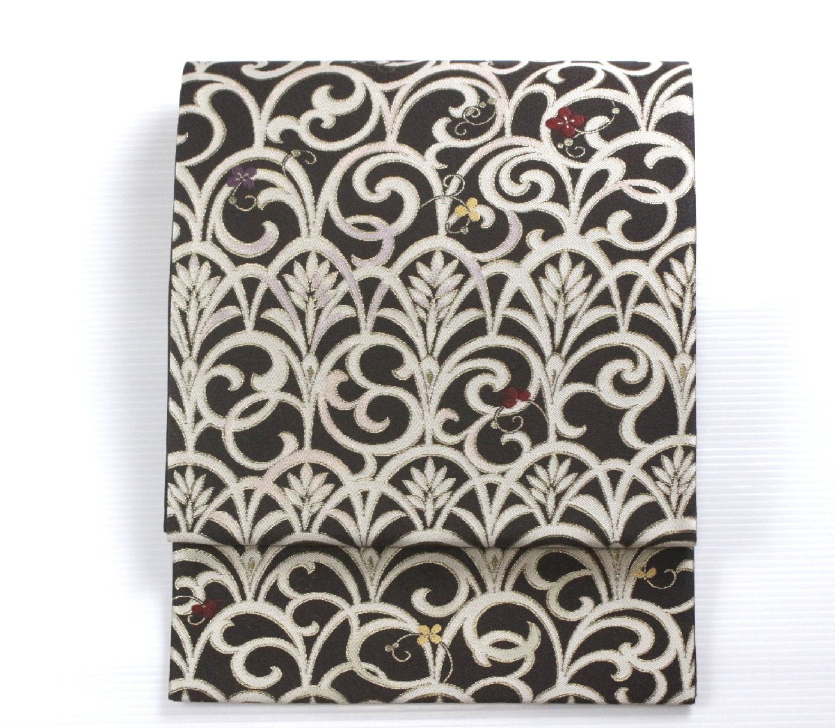 - *未使用*【Wamonoya BANKAN】西陣織 正絹袋帯 花唐草文《みらくるコート》加工済 e-2582