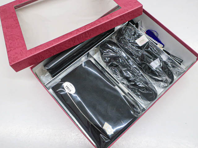 > 《京都一輝堂》【着物】 和装小物 喪服用 草履 約23.5cm バッグ 帯揚げ 帯締め 夏物 など セット 箱入り 24w-10561