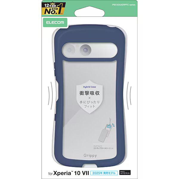 - Xperia 10 VII用ハイブリッドケース [GRIP] 中央のくびれ形状に平坦な面を設け、手に馴染む快適なグリップ感を実現: PM-X252GRPFCNV