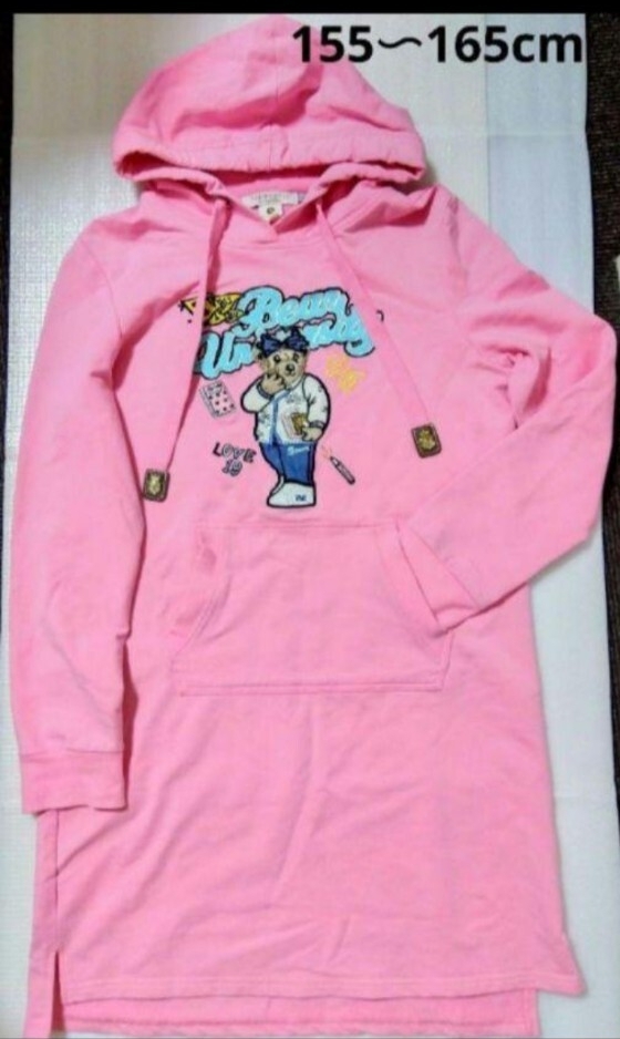 - キッズピンク フード付き ローグパーカー 155〜165cm コットン