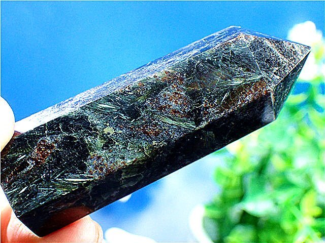 天然石高品質(藍タイチンルチル入り)虎晶石六角柱YT4Q2-06Q01b