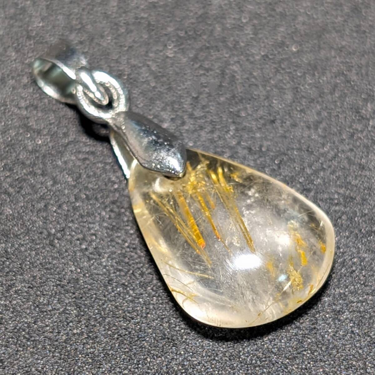 - 【きれいなドロップ型ルース】ルチルペンダント ゴールドルチル クォーツ 金針水晶 18KGP 金運 開運 天然石 パワーストーン 贈り物 ギフト