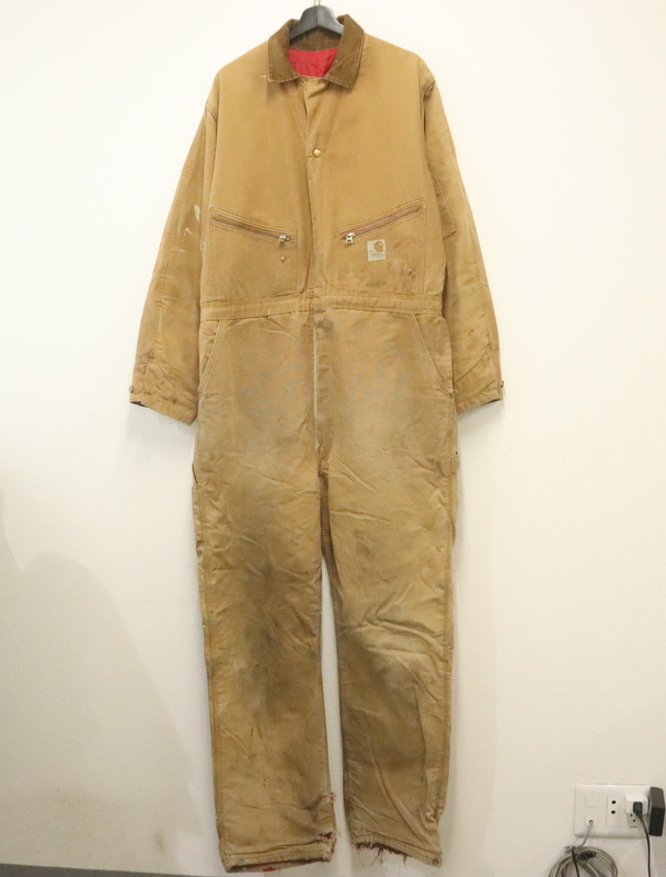 > d139 70sビンテージ Carhartt カーハート ダック つなぎ USA製■1970年代製 表記サイズ44 ブラウン オールインワン 中綿 SCOVILL 古着 60s