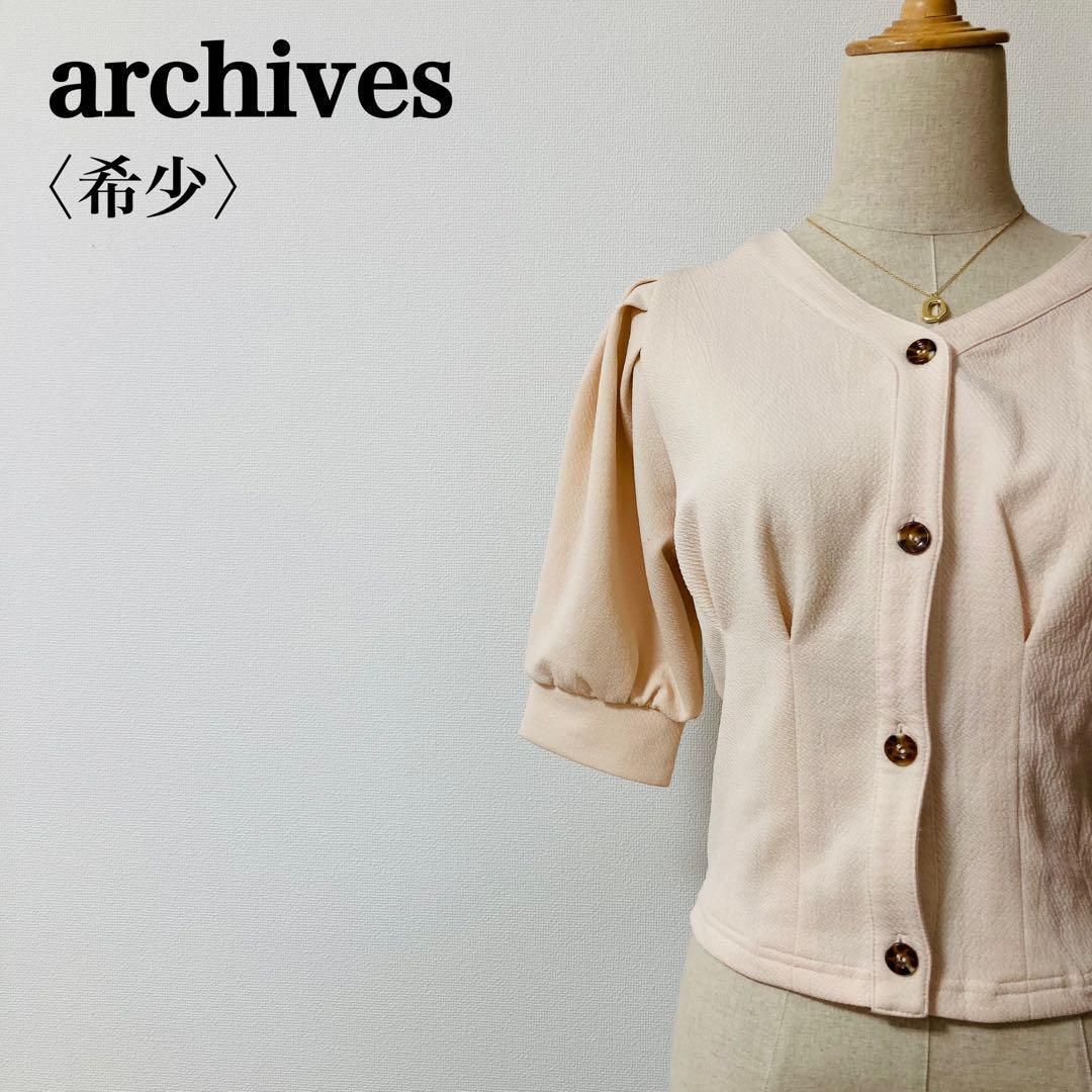 - T アルシーヴ ショート丈ジャケット Vネック バルーンスリーブ ライトピンクM
