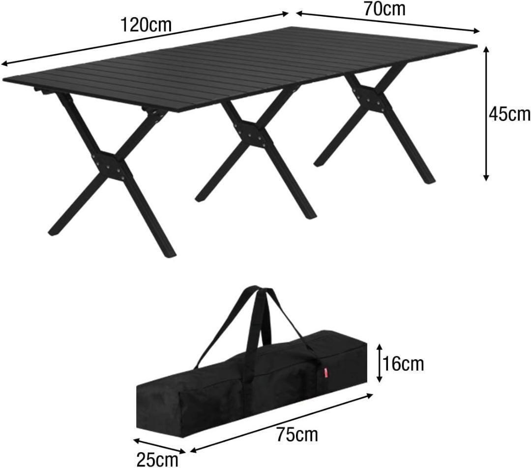 - アウトドア テーブル アルミ ロールテーブル ブラック キャンプ 120cm