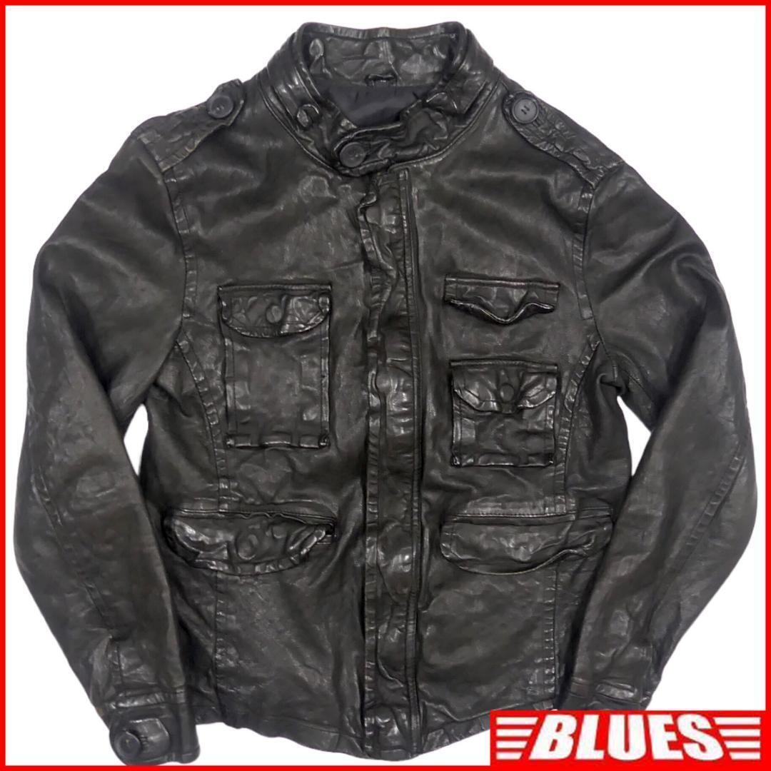 > 即決★N.B.★メンズL レザージャケット 48黒 本革 ブルゾン 本皮 ジャンパー 革ジャン フライトジャケット立襟 ライダースジャケット