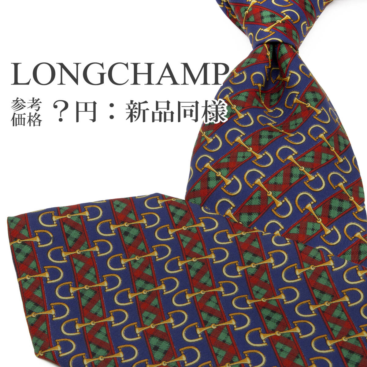 > 送料無料 ロンシャン ネクタイ 新品同様 シルク 青 ブルー 赤 緑 黄色 茶色 ストライプ ホースビット Y2K ブランド イタリア製 綺麗 P486