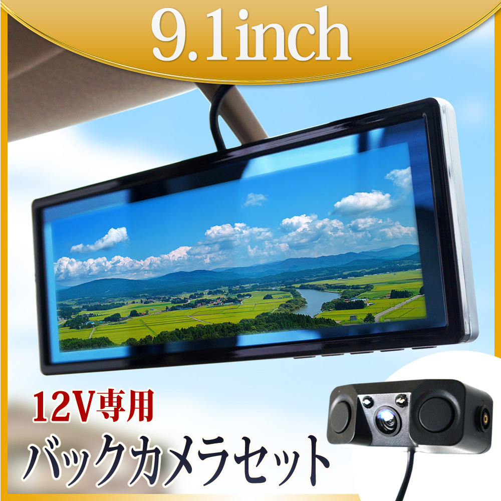 - ★バックミラーモニター 9.1インチ バックカメラモニター セット 12V専用 Wセンサー ブザー付 リアモニター B391C893B