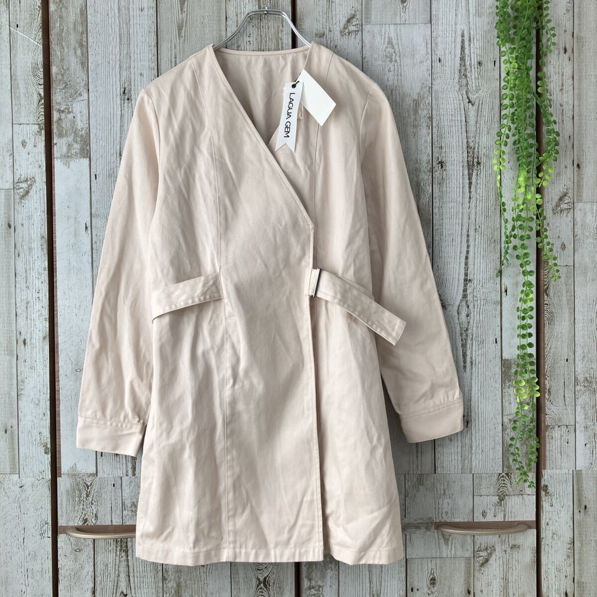 > ☆LAGUA GEM ラグアジェム☆ジャケット アウター ベージュ S ノーカラー Vネック レディース ベルテッド [送料無料☆匿名配送] w6084