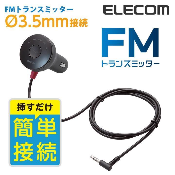 - 送料無料【訳あり・未使用品】エレコム FMトランスミッター 3.5mmミニプラグ 重低音ブースト機能■12/24V車対応■ブラック