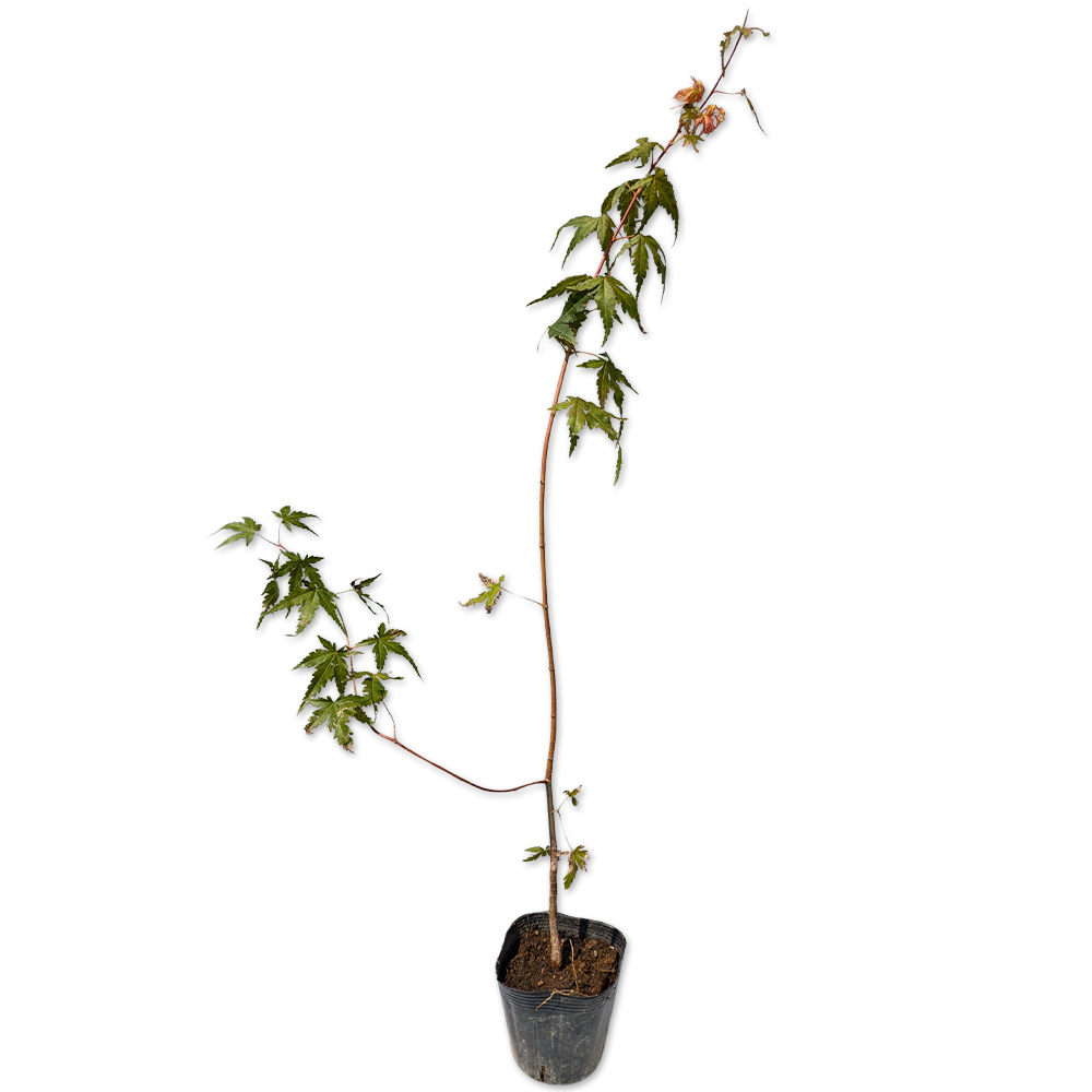ヤマモミジは10~15mになる落葉高木です。日本が原産です。葉は対生しており、いろは楓(イロハカエデ)とよく似ていますが、葉はイロハよりも大きいです。花は淡い紅色~淡い黄緑色で雌雄同株です。一つの花序に雄花と両性花が混生します。日本固有種。ヤマモミジの葉っぱは切れ込みが浅いこともあって、全体の印象がやわらかく、人気があります。秋になると赤く紅葉し庭木によく用いられる木です。春から夏にかけては、緑色の葉をしています。