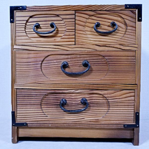 > 小箪笥 木製 焼杉? 小物入れ 昭和レトロ 引き出し こだんす 小さなタンス 伝統工芸 職人 和風 引き出し 3段 収納