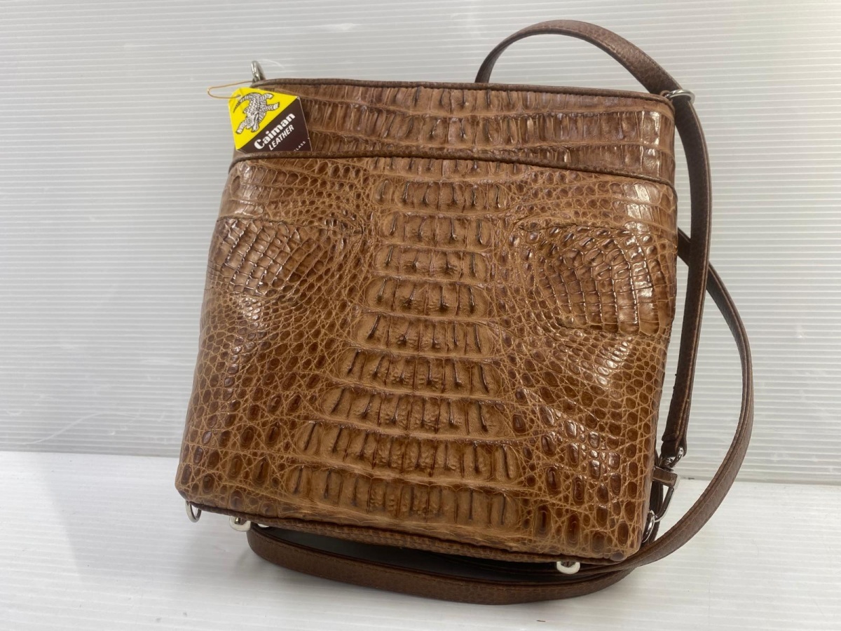 - 【中古品】Caiman カイマン クロコダイル ショルダーバッグ ブラウン ○YR-19020○