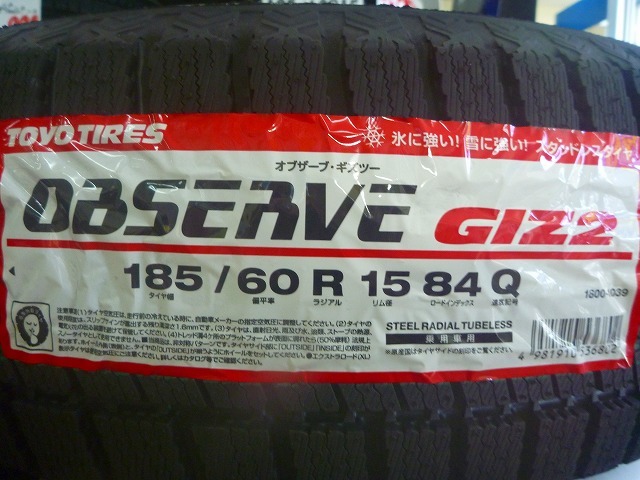 > 【送料無料】冬タイヤ2023年製 TOYO OBSERVE GIZ2 185/60R15 4本セット税込¥35,800-