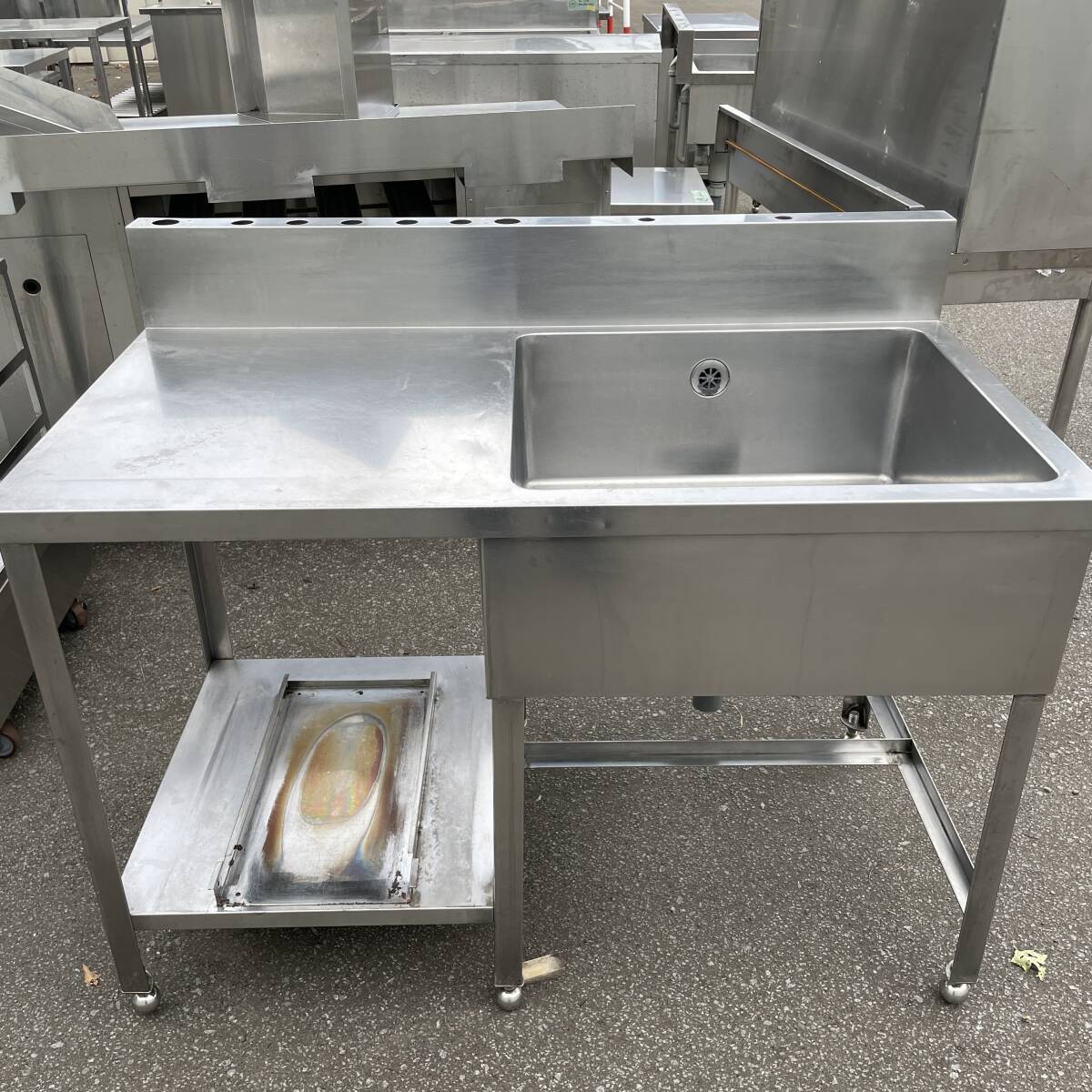 > ☆【札幌店開店二周年記念セール!作業台付シンク/1100×650×800(BG含め950)(mm)/訳あり品/中古品/札幌発】1498