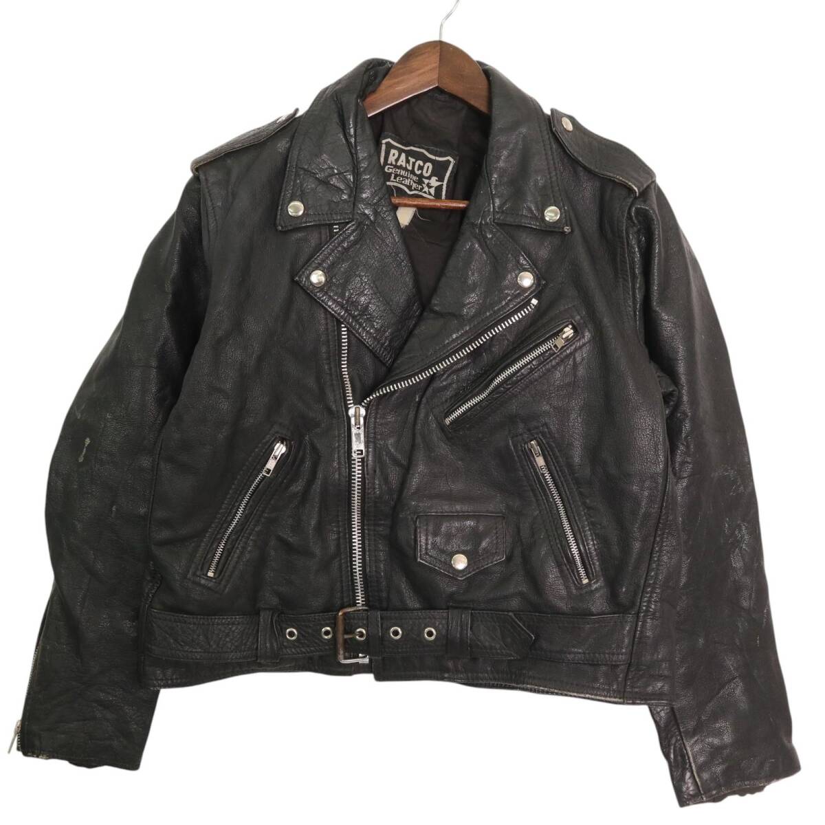 > RAJCO ダブルライダース レザージャケット バイクウェア モーターサイクル ブラック (メンズ M相当) 中古 古着 A3677