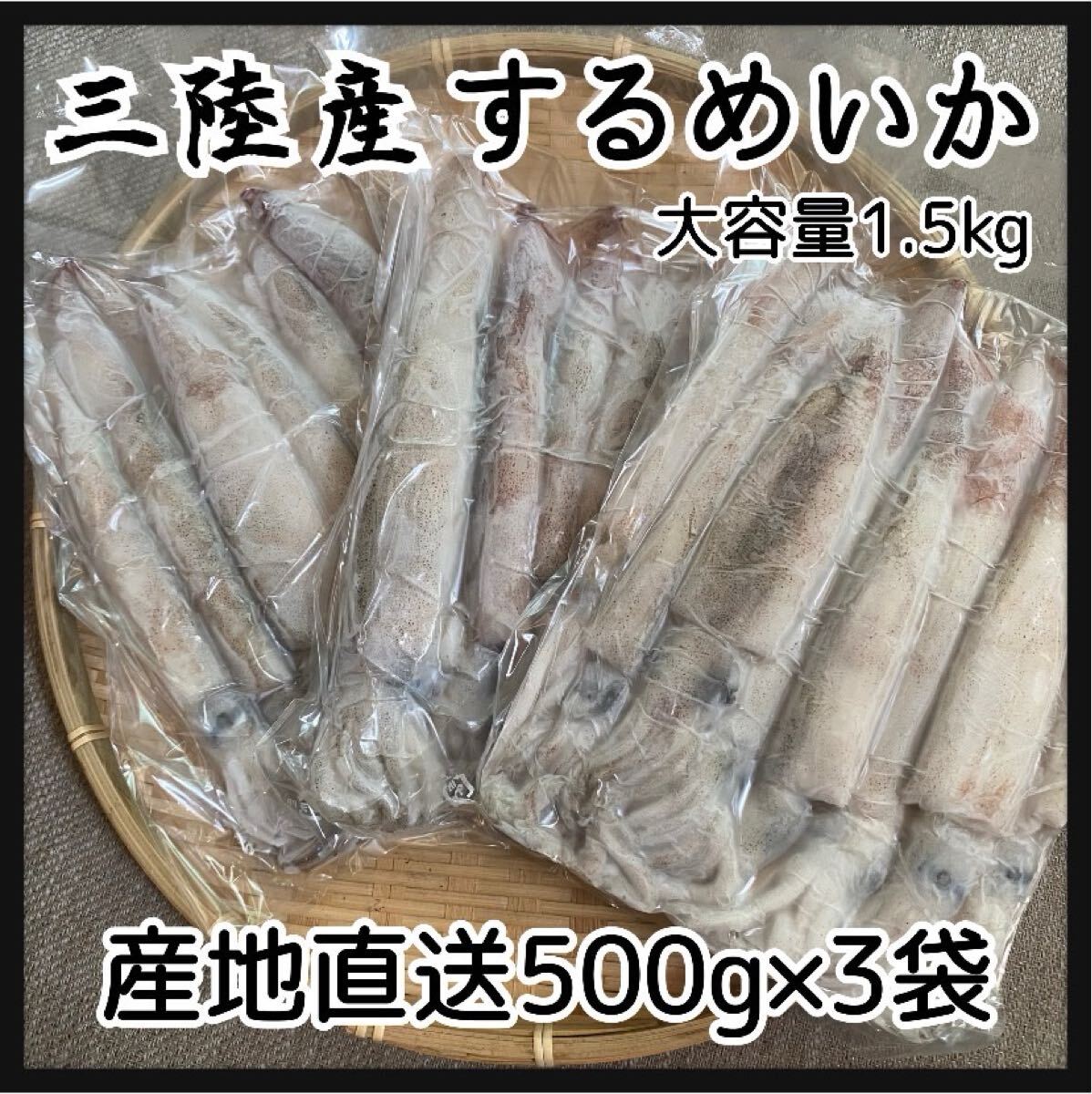 > 岩手県産 するめいか 個包装500g×3袋 大容量1.5kg 国産 三陸産 鯣烏賊 スルメイカ 冷凍クール便 無添加 真空包装 お値打ち価格
