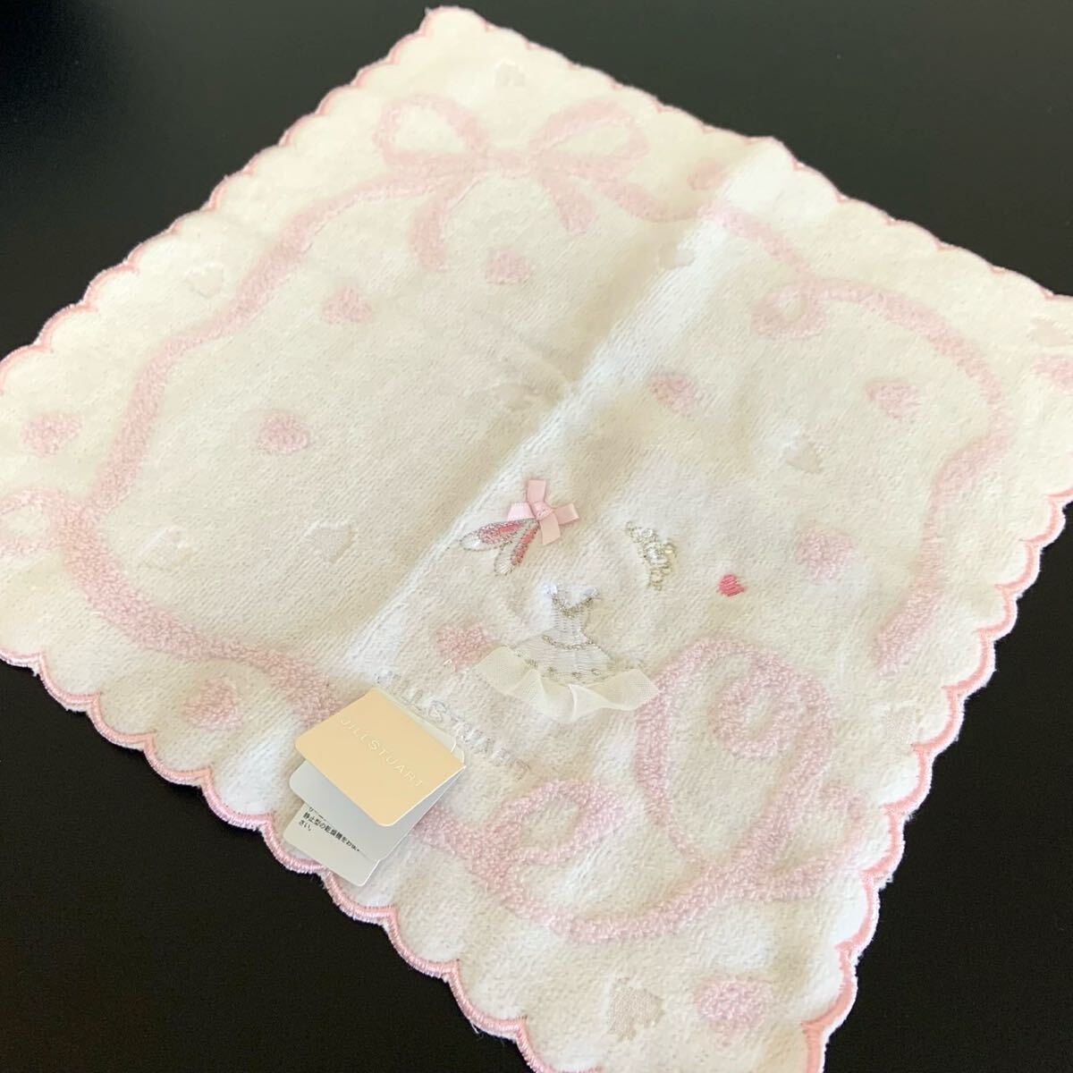 - 未使用 JILL STUART ジルスチュアート タオルハンカチ 約28×28cm ホワイト × ピンク系 リボン柄 綿100% レディース ハンカチ 川辺(株)