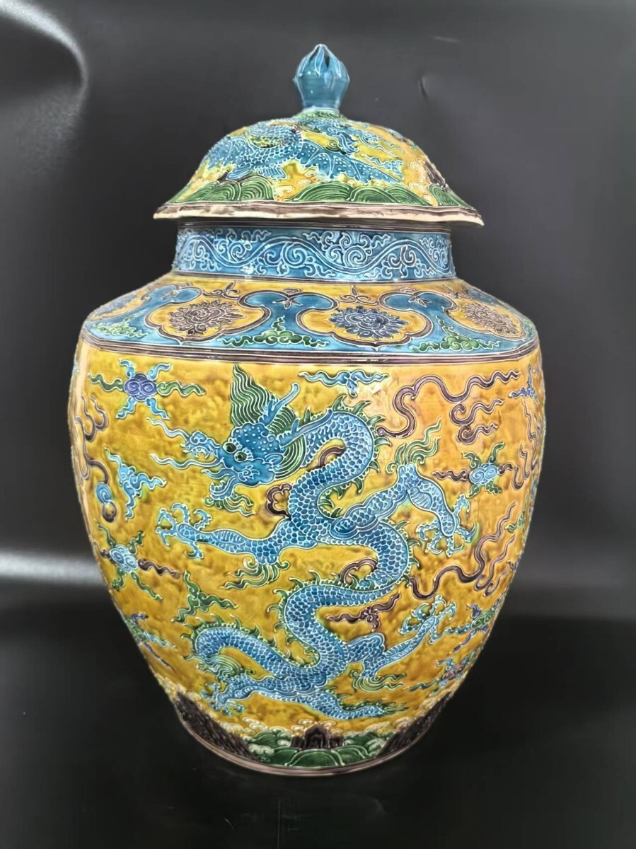 > 【萬藏】中国 明時代 琺瑯彩 龍文 蓋付 罐 骨董 古玩 中国美術 茶道具 当時物 骨董品 古玩 時代物 唐物 js3