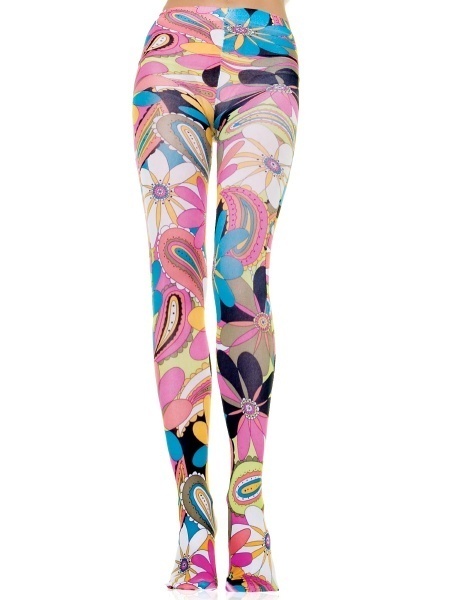 - ST7416◆レッグアベニュー サイケデリック柄 ド派手な花々プリントタイツ コスプレ ワンサイズ(M-L) 新品