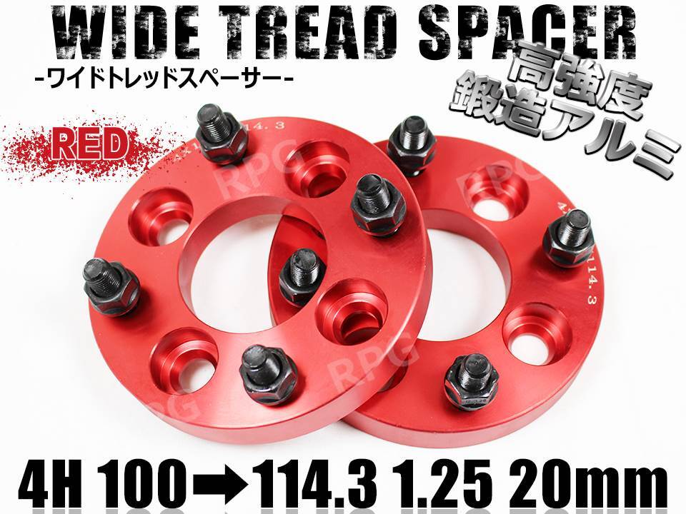- 4H100114.3変換 ワイドトレッドスペーサー 2枚組 1.25 20mm 赤