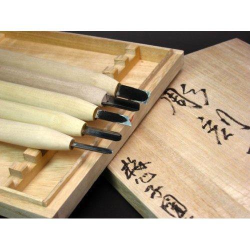 - 梅心子圀光 彫刻刀 5本組 桐箱入