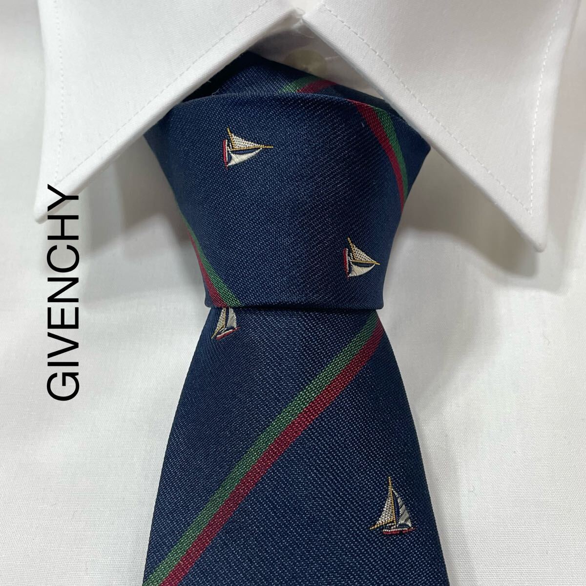 - GIVENCHY ジバンシー ヨット ストライプ ジャガード シルク ネクタイ イタリア製 ネイビー TG2949