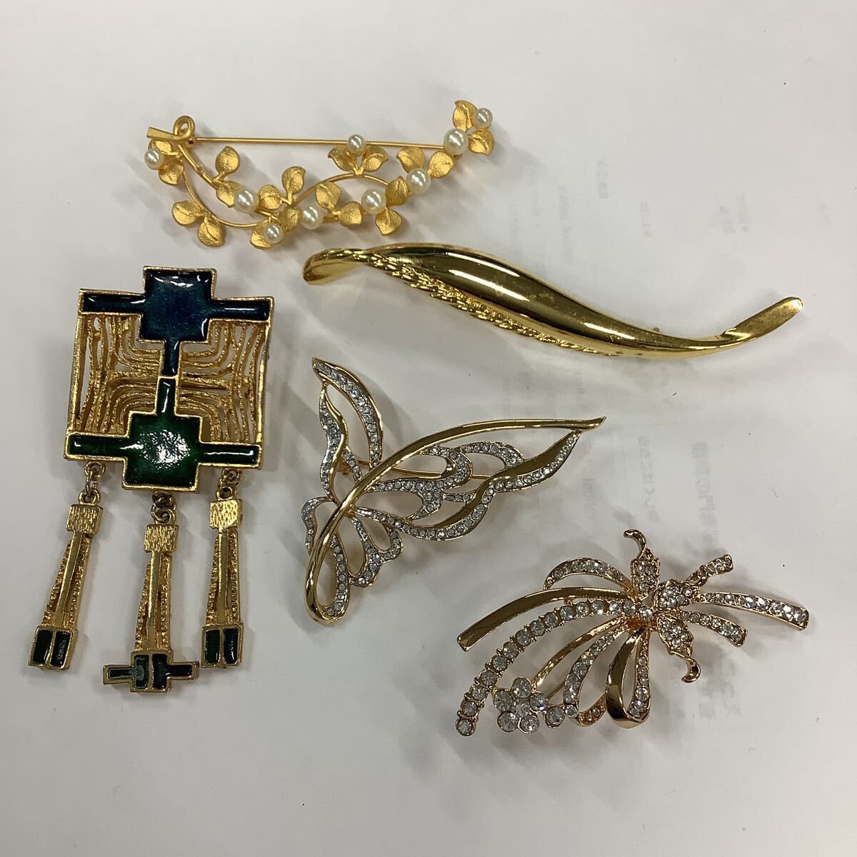 - ●ハ1787H◎キラキララインストーン・ゴールドカラーなど デザイン 色々 ブローチなど まとめて◎送料込み◎