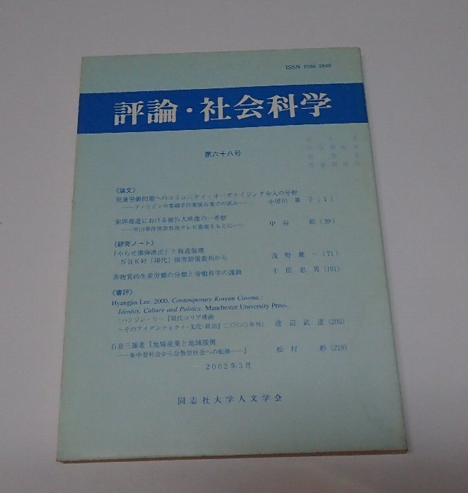 ●「評論・社会科学 2002年3月 第69号」 同志社大学人文学会