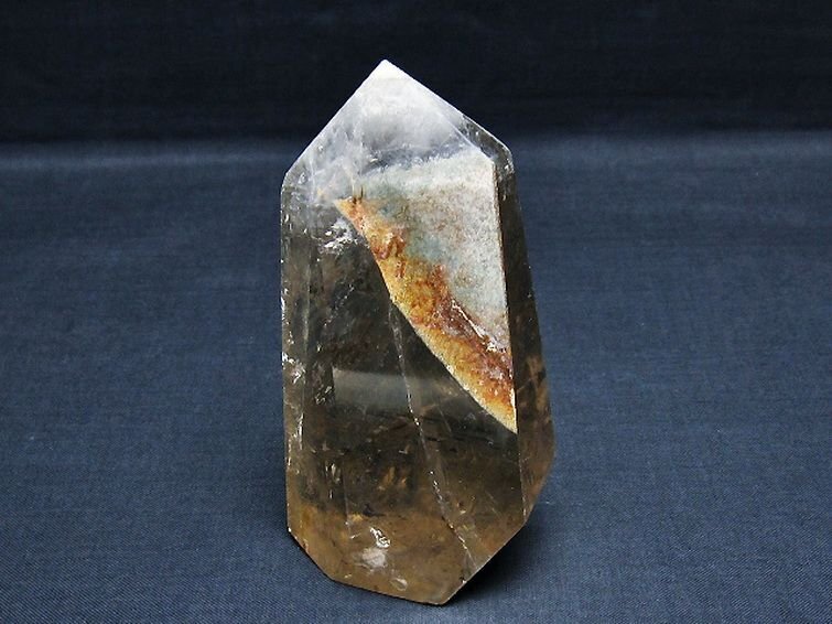 水晶の結晶が生成していく過程でいったん成長が止まり、その後再び成長を開始すると、その境目に気泡や他の物質が取り込まれ、まるで山の影を思わせる模様ができます。時にはそうした山の影が幾層にも連なっる場合があります。こうしてできた石を、ファントム水晶と呼びます。和名では、「幻影水晶」「幽霊水晶」と称される場合もあります。