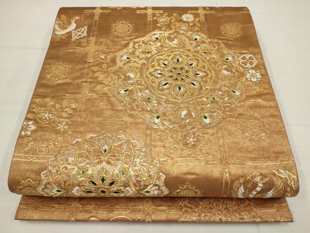 - 平和屋着物▼京の名門 じゅらく謹製 玉蟲貴人 六通柄袋帯 花鳥文 金銀糸 正絹 逸品 AABB1108wj