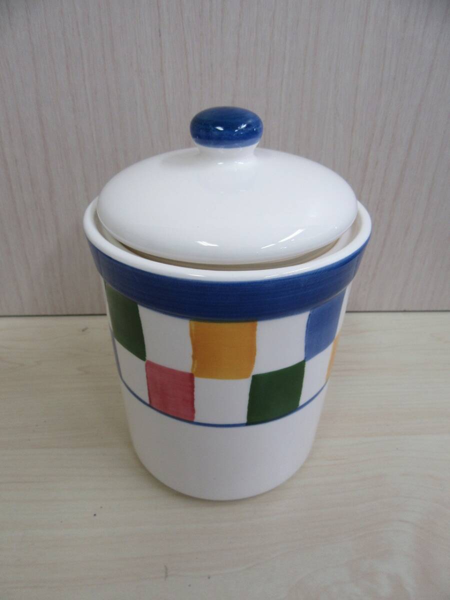 - 【10-5】キャニスター シンプルチェック 陶器 レトロ 深さ約13cm