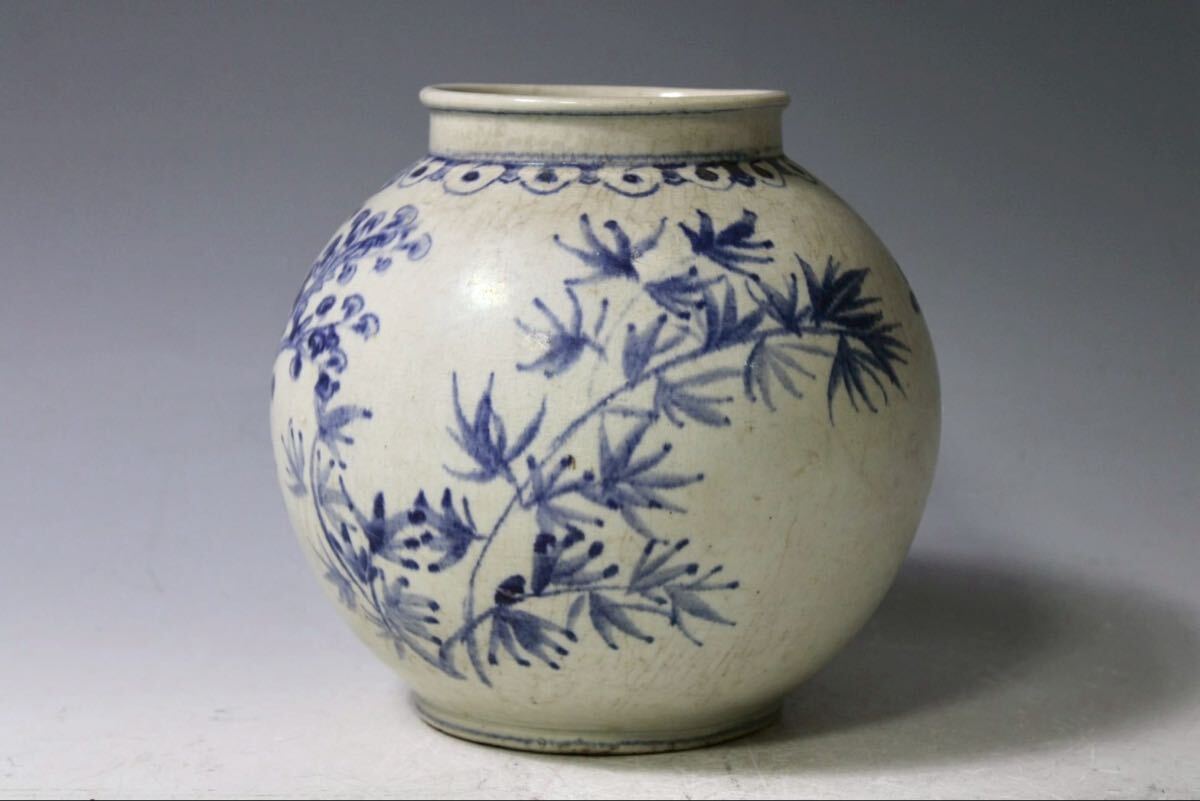 - 【英】B309 時代 李朝白磁染付壺 中国美術 朝鮮 韓国 高麗 李朝 壷 青花 骨董品 美術品 古美術 時代品 tr
