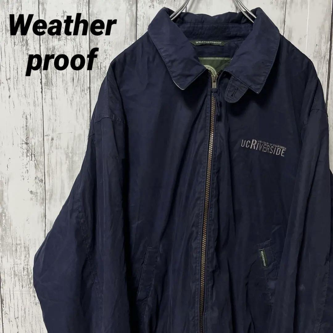 > C2576 ウェザープルーフ スイングトップ ブルゾン ネイビー 刺繍 海外古着 アメリカ古着 ジャンパー アウター スポーツ 上着 カジュアル L