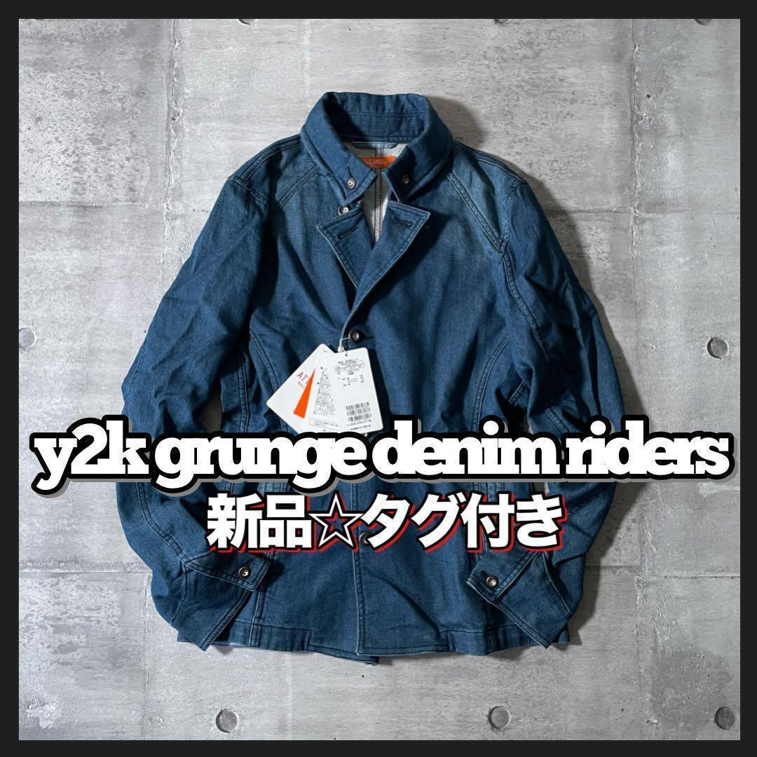 - 新品タグ付き デニムライダースジャケット スウェットブルゾン y2k グランジ