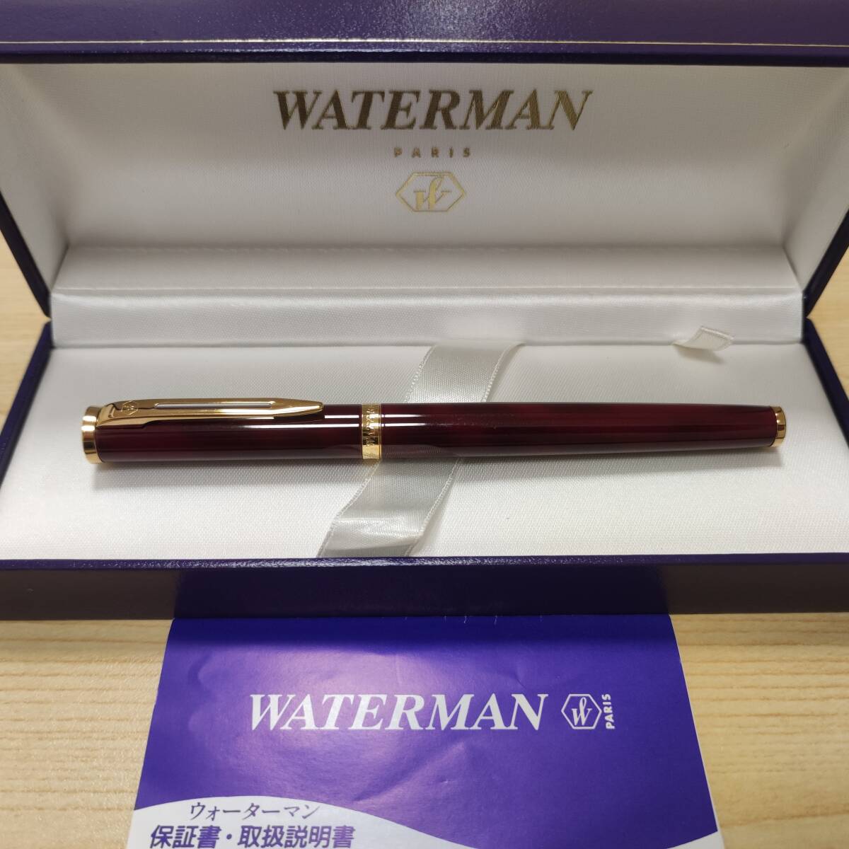 - 美品★WATERMAN 万年筆 ペン先 18 750 レッド系×ゴールド 筆記未確認 ケース付き ウォーターマン