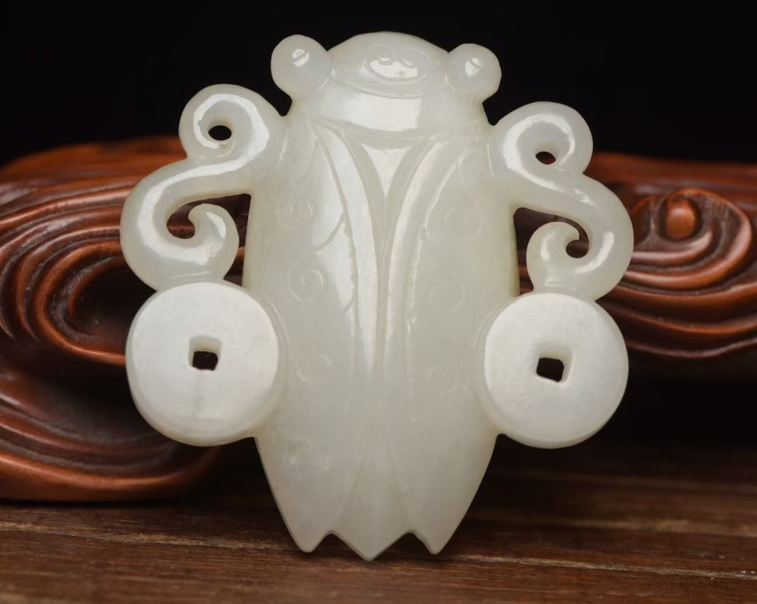 - 【超珍館蔵】和田玉製 細密彫 鏤空彫 玉蝉 置物 賞物 古賞物 古董品 古美術品 時代物 旧家蔵出 稀少珍蔵品