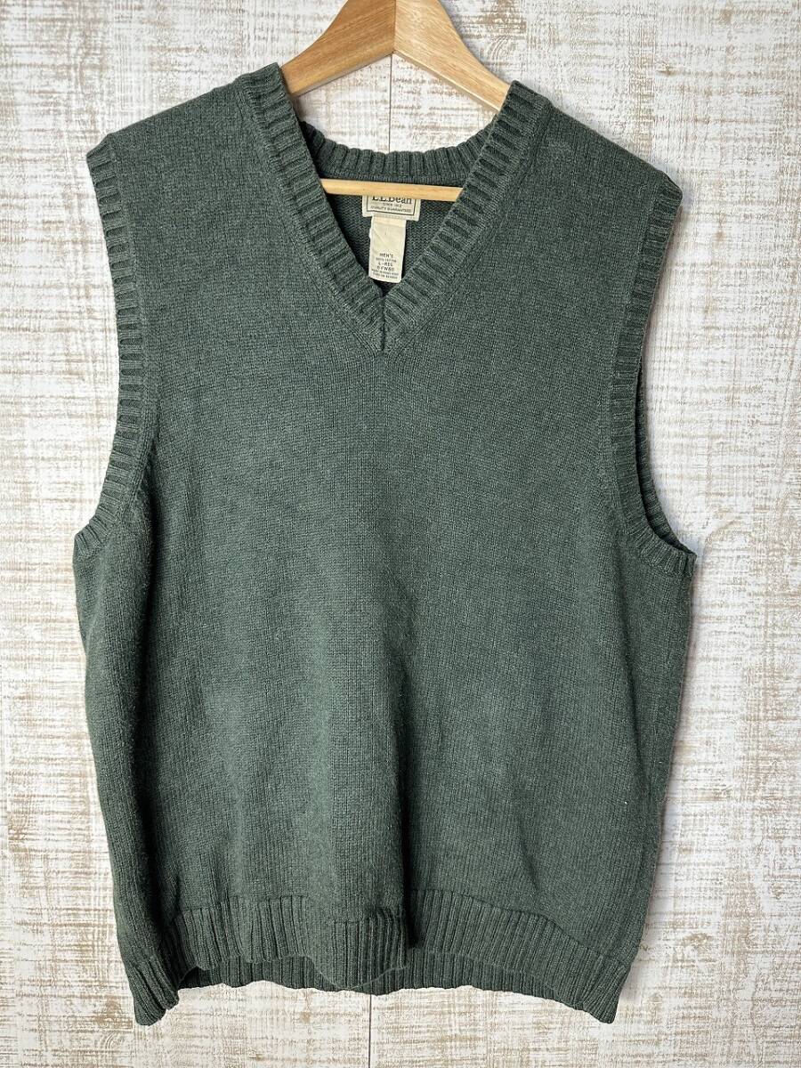 - ☆US古着 L.L.Bean エルエルビーン ベスト コットンニット セーター Vネック スクールベスト アウトドア グリーン緑カーキ【L】 ◆5265◆