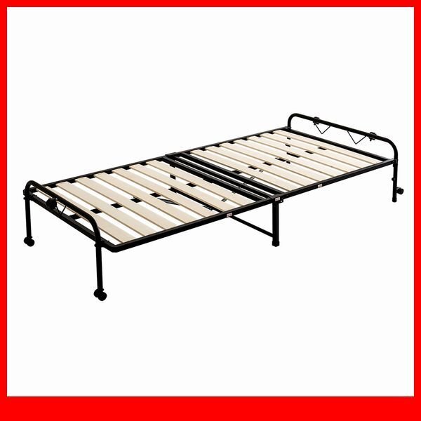 > 折りたたみベッド★新品/折りたたみパイプすのこベッド シングル/シンプル キャスター付き 布団干し/ブラック/a1