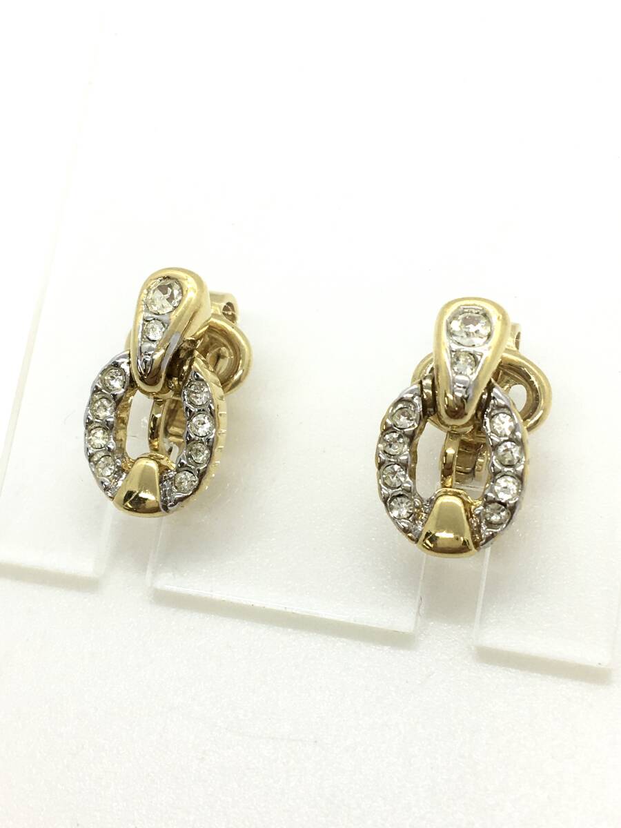 - ◇1円◇ NINA RICCI ニナリッチ イヤリング ゴールドカラー ラインストーン オーバル チャーム レディース アクセサリー ジュエリー
