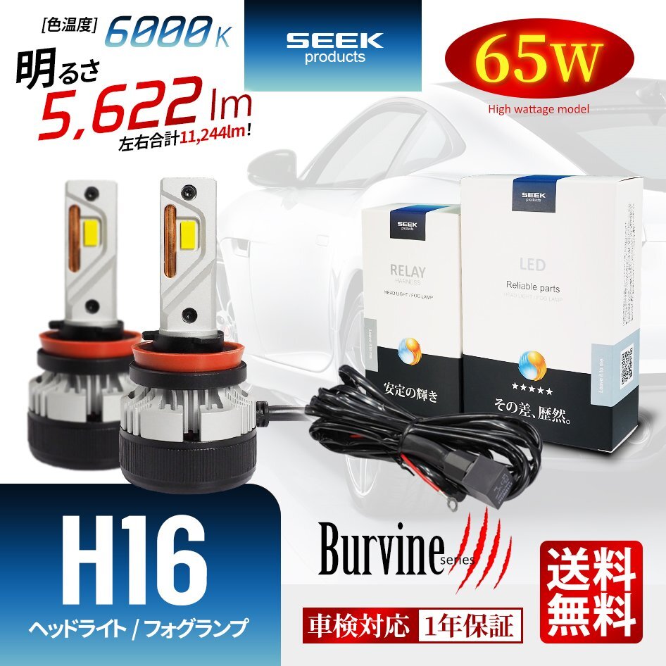 > SEEK Products 左右計130W 11244lm LEDフォグランプ H16 バルブ ホワイト 後付け 強化リレー付 1年保証 Burvine 宅配便 送料無料