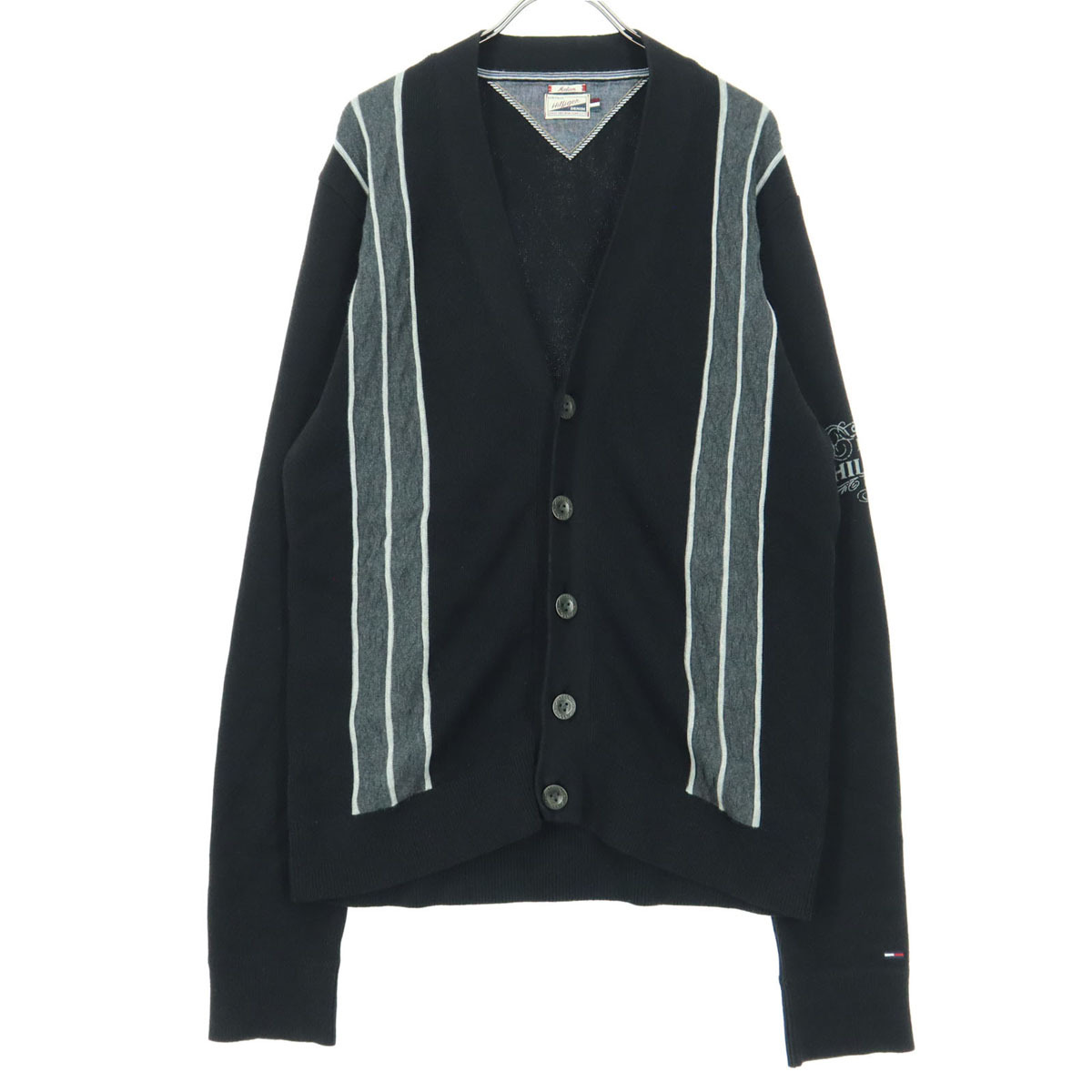 - TOMMY HILFIGER トミーヒルフィガー ストライプ柄 長袖 ニットカーディガン M ブラック メンズ